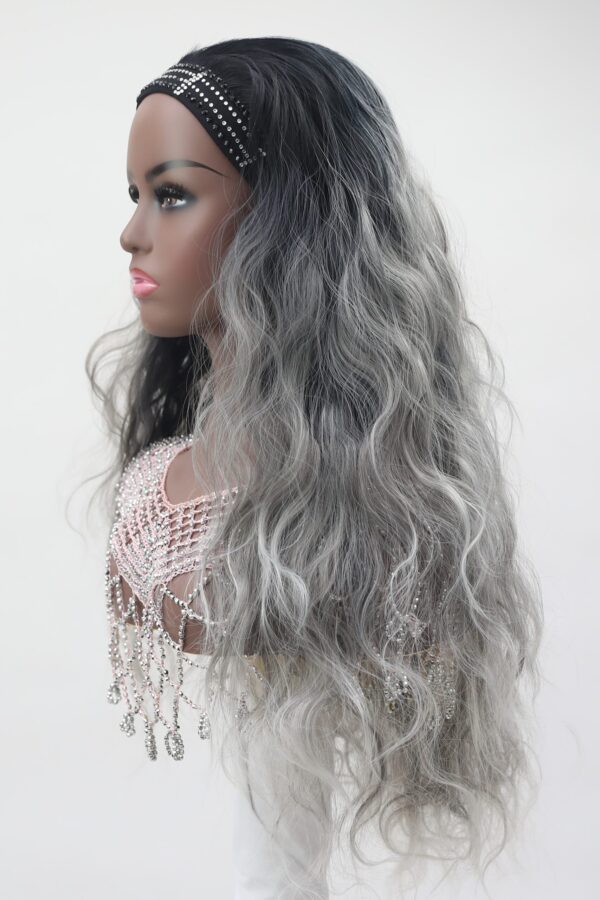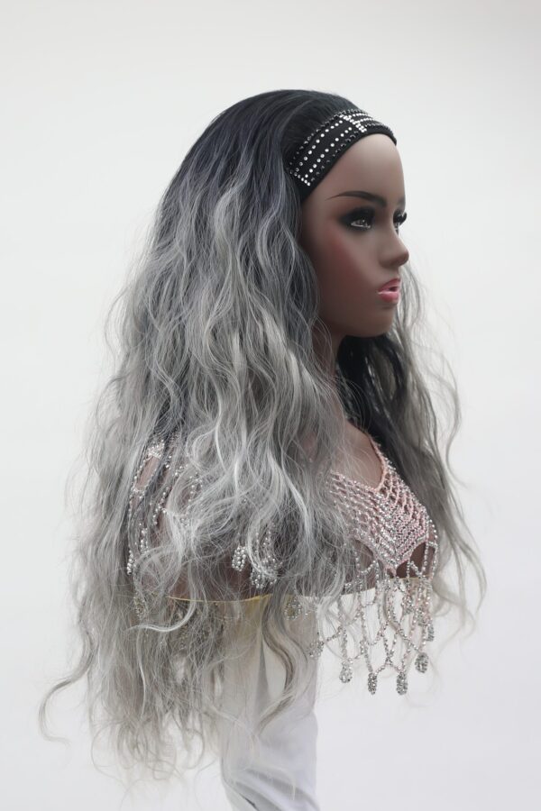 Say hello to Celeste! I am your dip dye/ombre silver tone wig with long loose waves. I am encrusted with diamond crystal rhinestone diamante 3mm and 5mm size. The stones are encrusted on my stretch wig headband, and I am very easy to wear. You can have me waterproof lined or simply without, the choice is all yours! I will make you sparkle like a star!