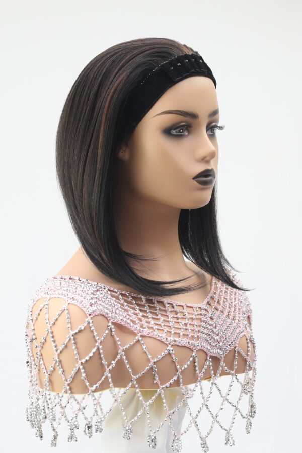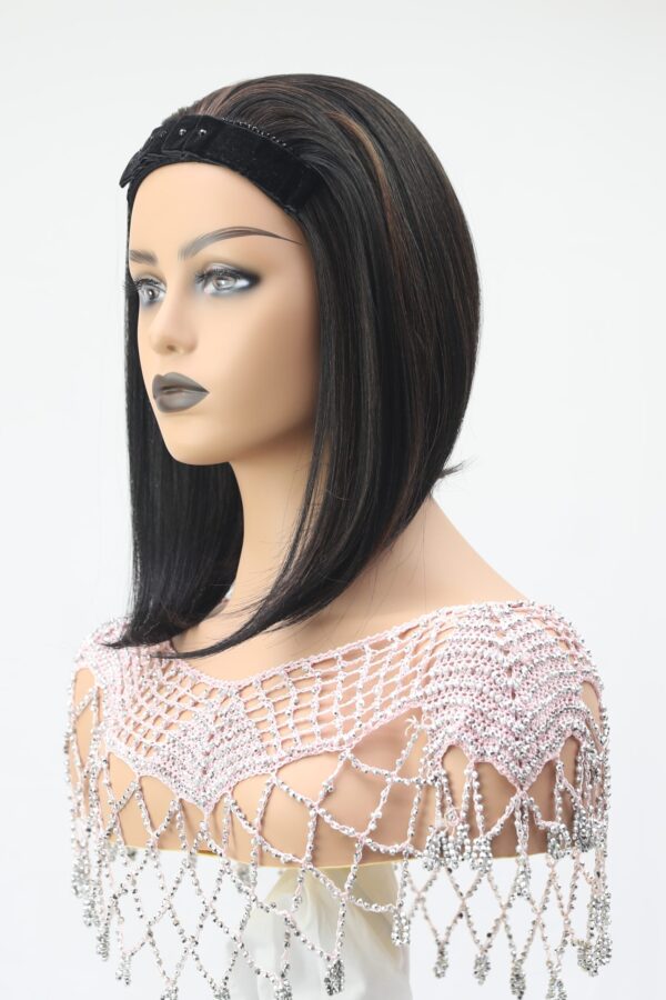 Say hello to Cindy! I am your black/blonde highlight tone straight bob wig. My hairline is designed with Velcro, and a black encrusted velvet ribbon band. My Velcro headband is magic! You can switch me up as many times as you like with our beautifully designed bands that you can buy separately; you will never get bored of me because I am memorable and easy to wear. You can have me waterproof lined or simply without, the choice is all yours! A classy lady I am you will love me!