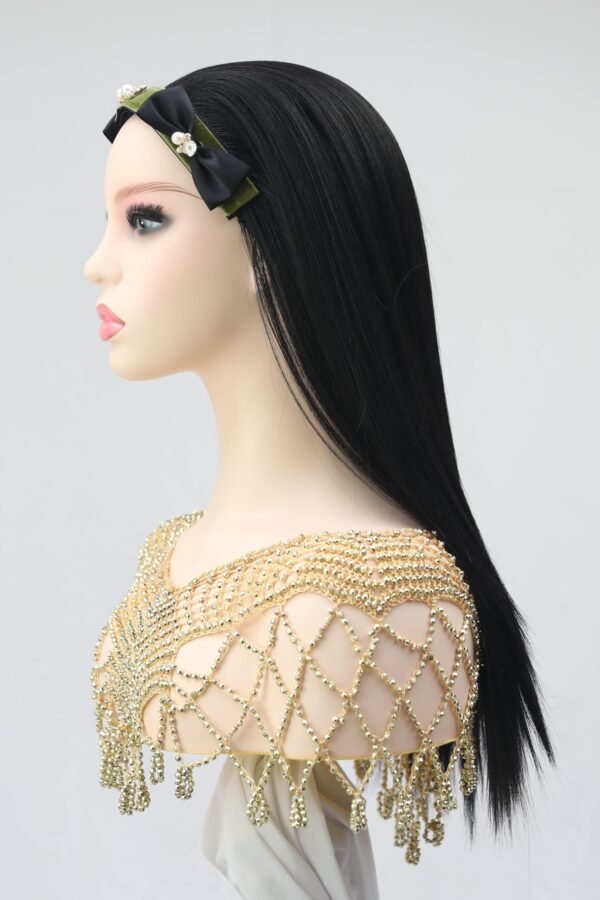 Say hello to Esme! I am your black tone straight wig. My hairband is designed from Velcro and embellished with bows, pretty ornaments, and a velvet ribbon. My Velcro hairband is magic! You can switch me up as many times as you like with beautifully designed bands that you can buy separately; you will never get bored of me because I as memorable & easy to wear. You can have me waterproof lined or simply without, the choice is all yours! I am so elegant; you will love me!