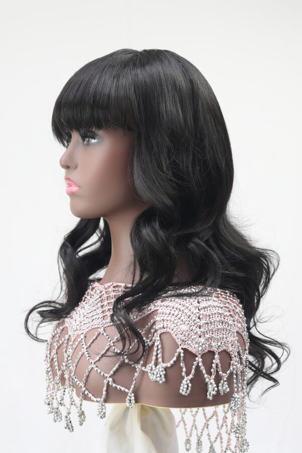 Say hello to Hildah! I am your black tone wig shoulder length wavy hair. I am easy to wear. My beautiful fringe and wavy hair will get all the heads turning! You will love me!